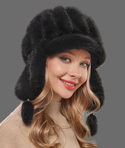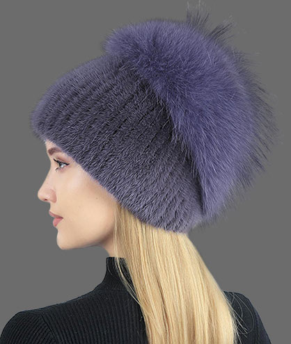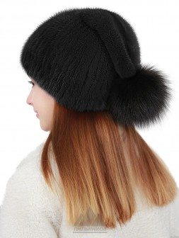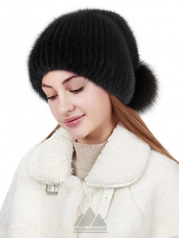 Сидни / Шапка с нашивным мехом норки на трикотажную основу