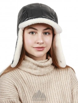 Нелли / Шапка-ушанка из мутона на мягкой коже